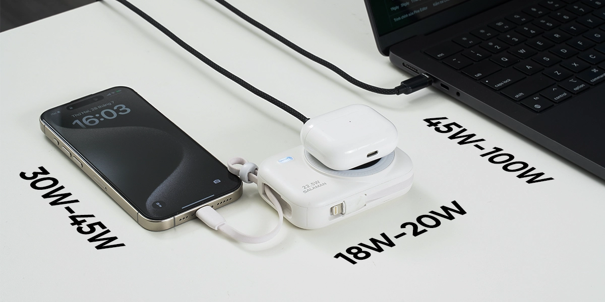- Với iPhone (từ 12 trở về trước), công suất 18W–20W là tối ưu.