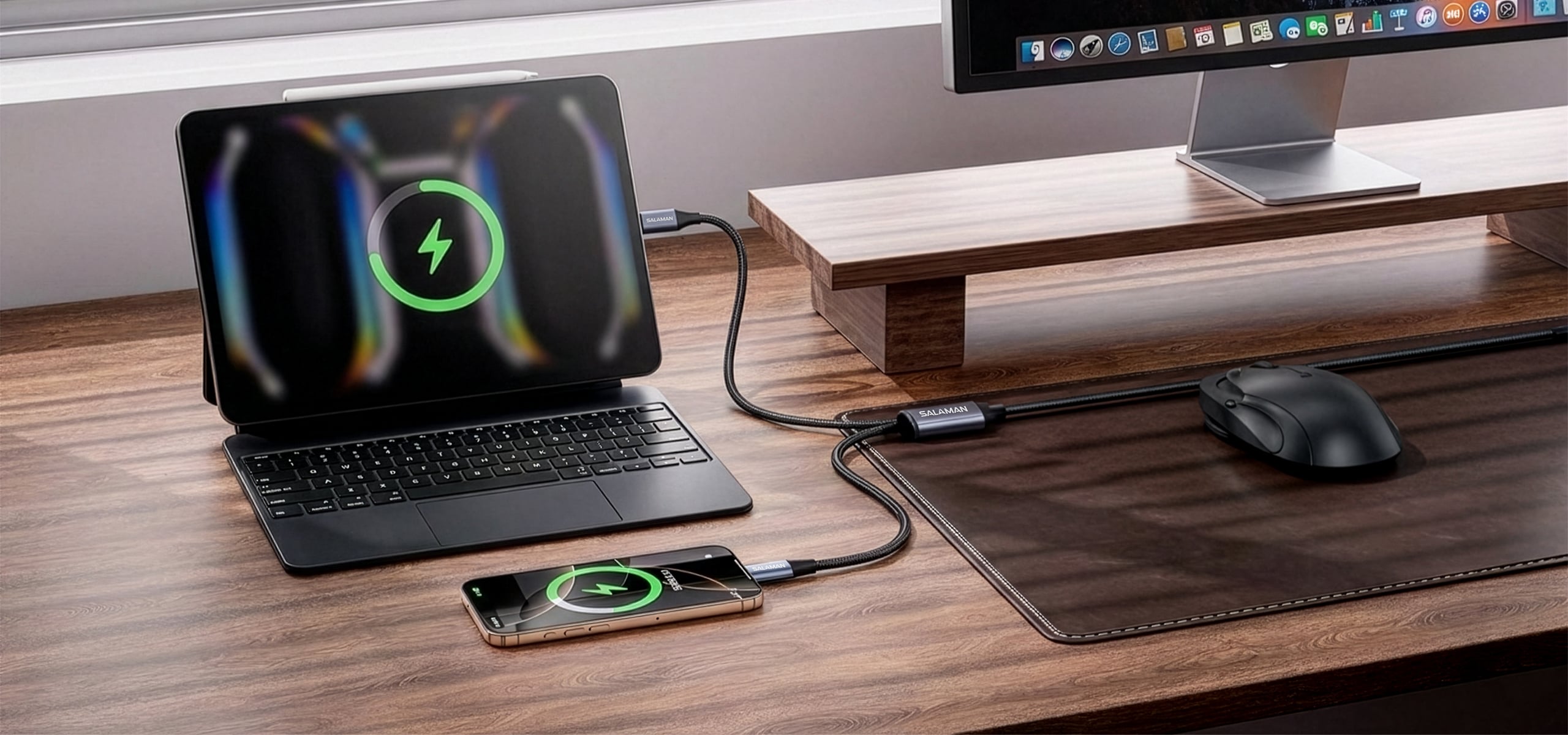 Dây Sạc Nhanh Salaman Edge SP 60W là cáp đa năng hoàn hảo cho người dùng hiện đại. Với công suất 60W và chuẩn QC/PD, cáp tiết kiệm tối đa thời gian sạc. Thiết kế cổng sạc kép USB-C + Lightning giúp bạn sạc nhanh mọi thiết bị chỉ với một sợi cáp duy nhất.