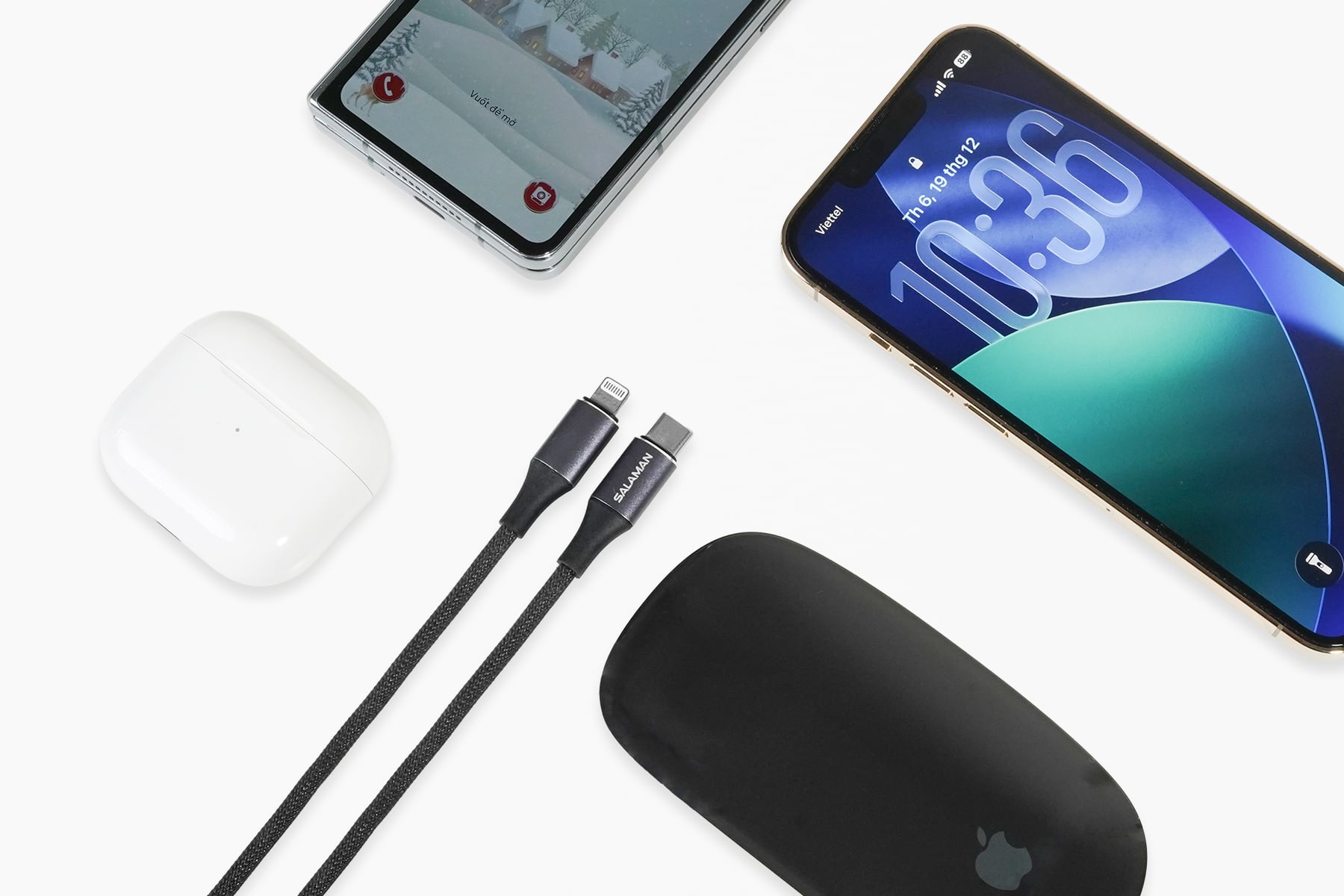 | Cổng kết nối | USB-C to USB-C + Lightning |