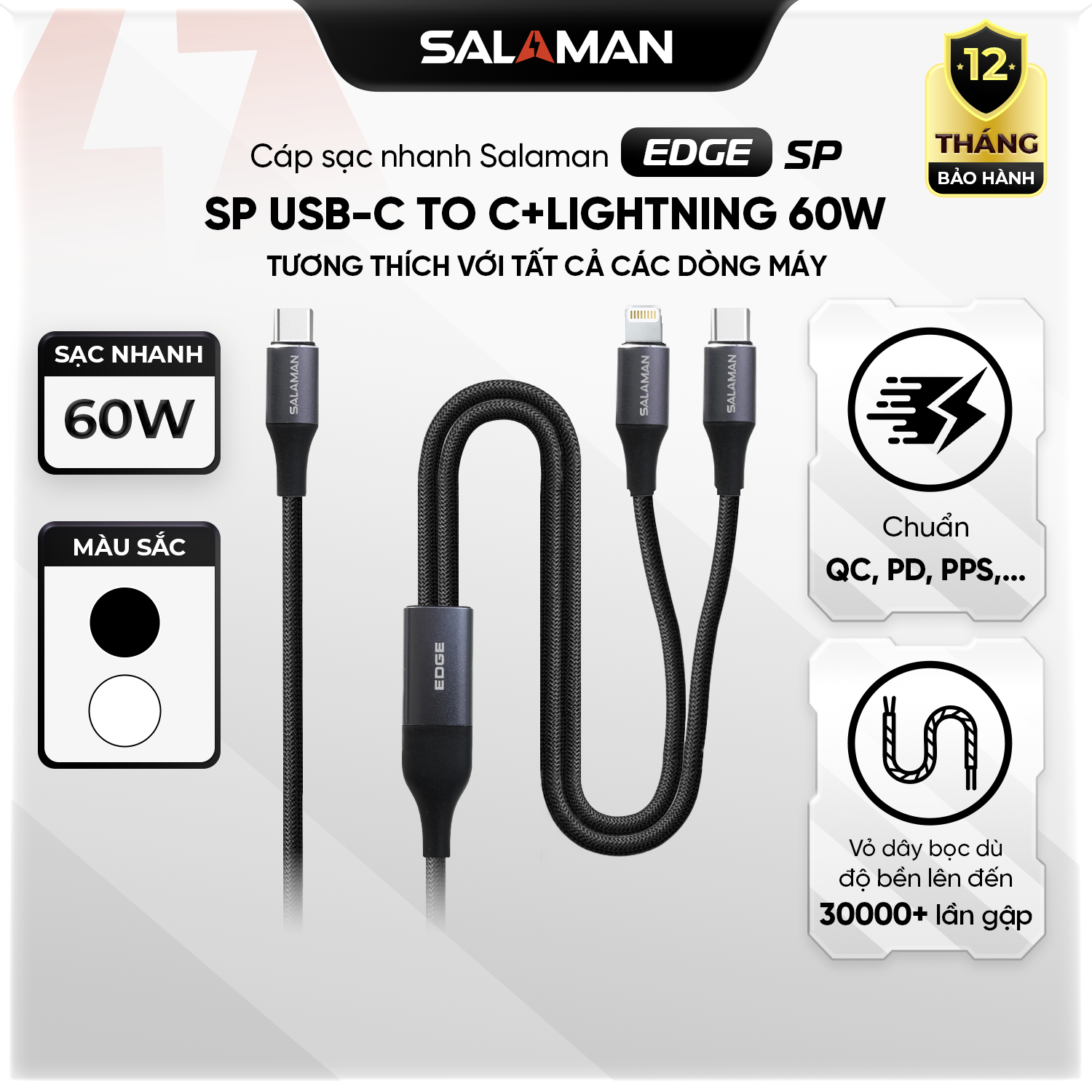 Cáp Sạc Nhanh Salaman Edge SP 2IN1 60W