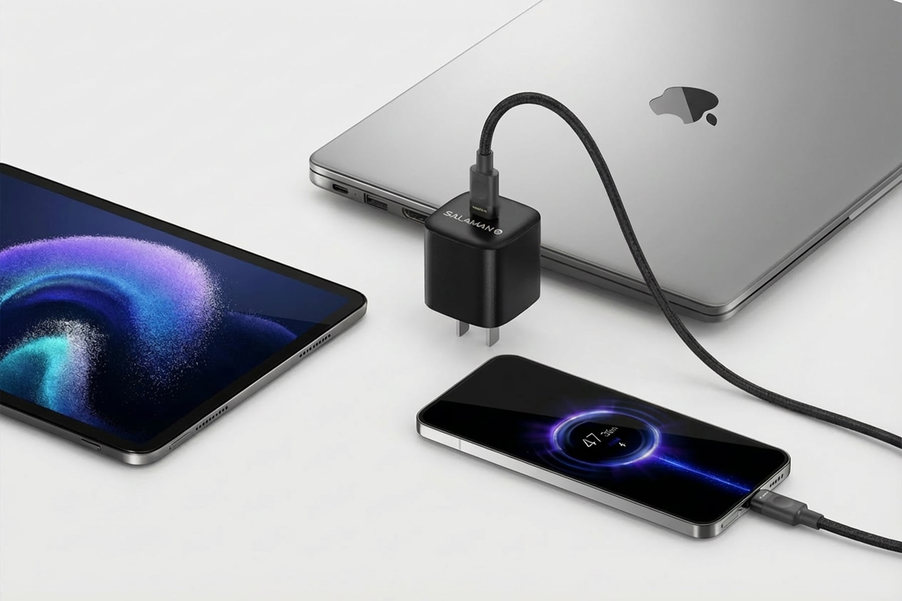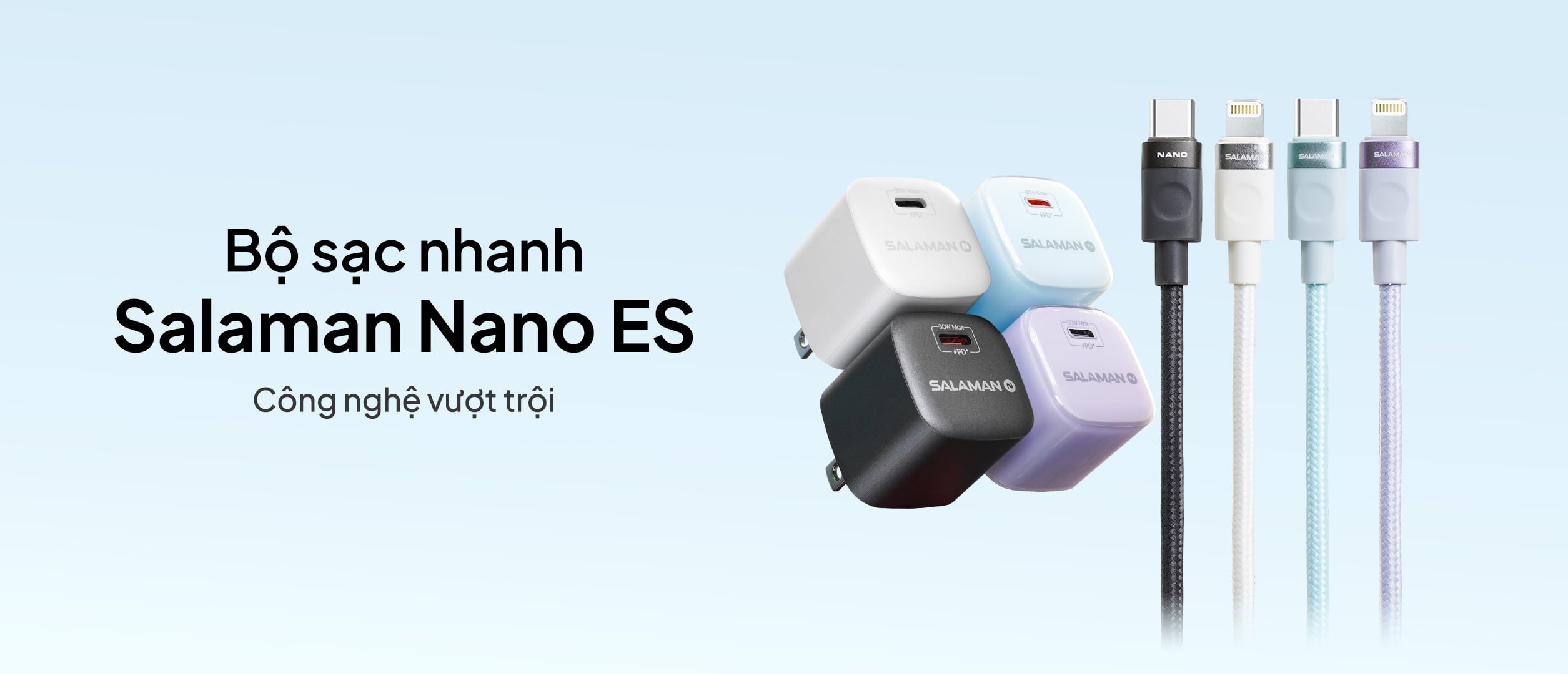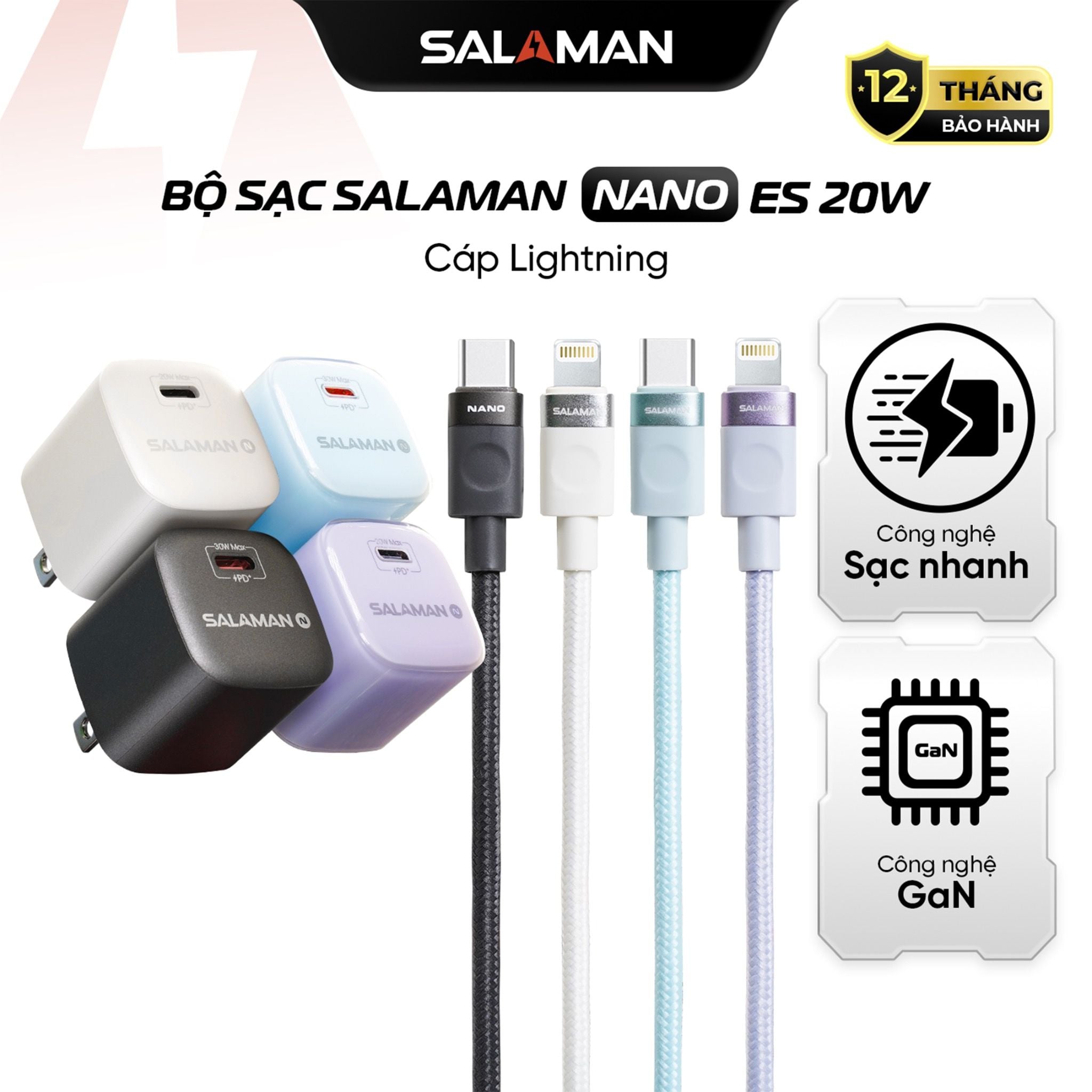 Bộ Sạc Salaman Nano ES 20W sử dụng công nghệ GaN3 tiên tiến, mang lại khả năng sạc nhanh và ổn định vượt trội. Thiết kế nhỏ gọn, tinh tế cùng dây sạc C to L bọc dù siêu bền, sản phẩm là lựa chọn hoàn hảo cho mọi thiết bị iPhone và tương thích nhiều thiết bị khác.