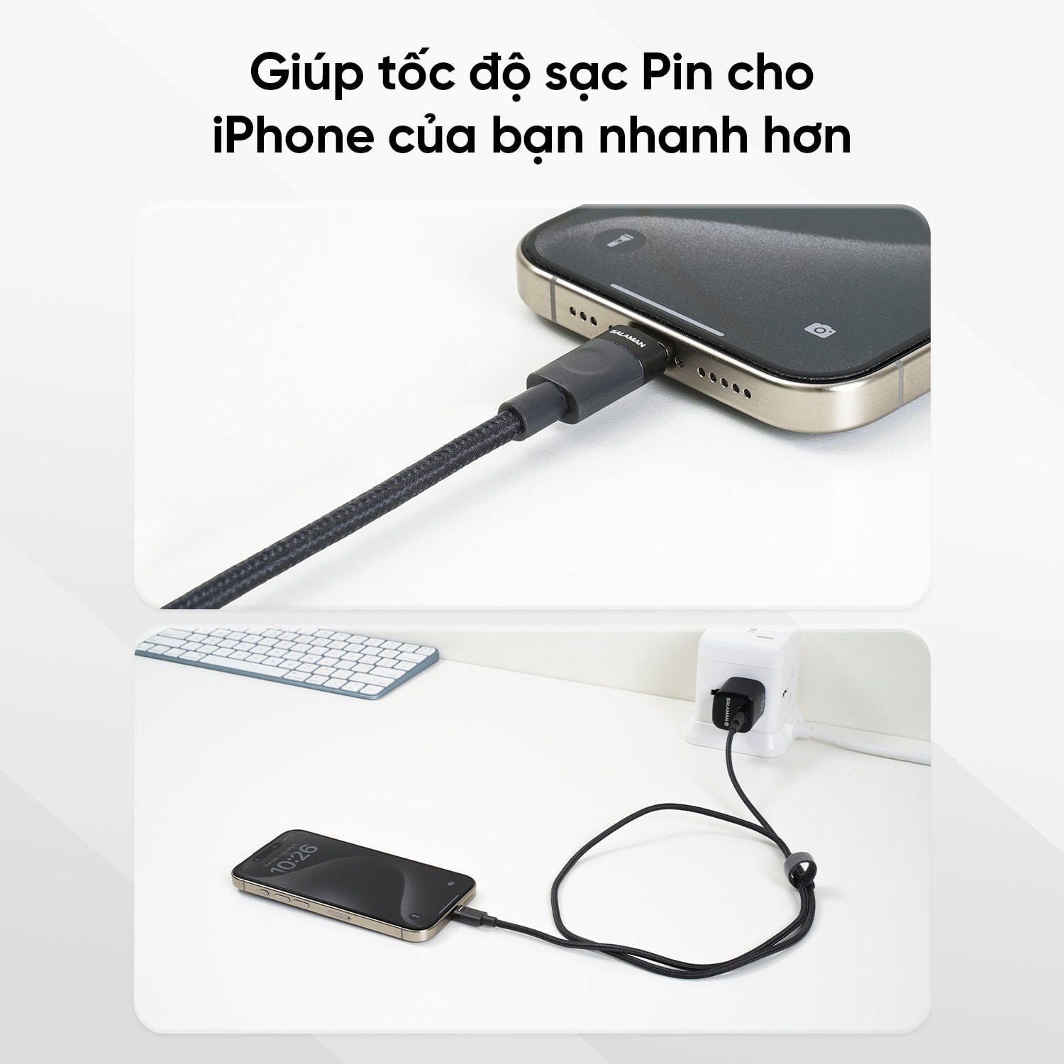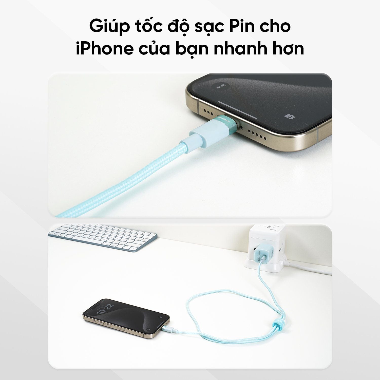 Dây Sạc Bền Bỉ: Kèm dây sạc bọc dù chống rối, chịu uốn cong 30.000 lần, đảm bảo độ bền vượt trội.