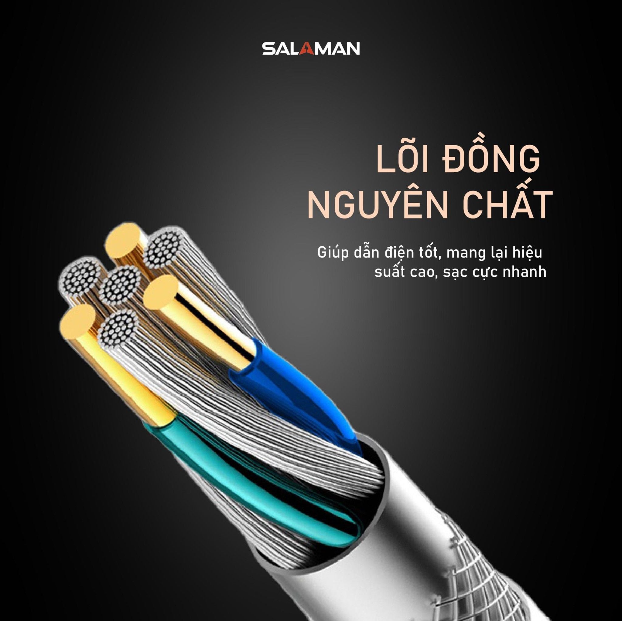 Hiệu Suất & An Toàn Cao: Lõi đồng nguyên chất mạ thiếc giúp dẫn điện tốt, giảm sinh nhiệt, cùng cấu trúc chống nhiễu/tĩnh điện, đảm bảo sạc nhanh, ổn định.