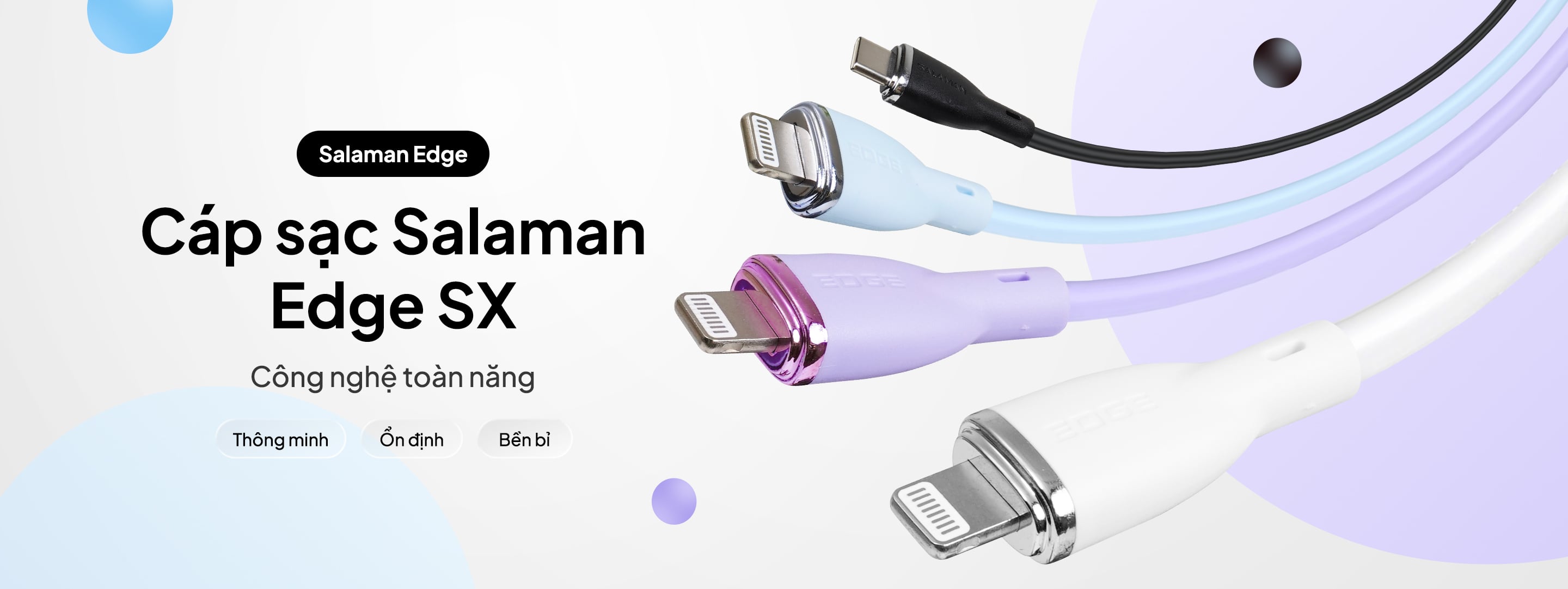 Salaman Edge SX không chỉ là cáp sạc; đó là tuyên ngôn về lối sống tối giản, hiệu suất vượt trội và sự an toàn tuyệt đối. Hãy nâng cấp ngay để tận hưởng chuẩn mực sạc thế hệ mới - nơi công nghệ đồng hành cùng thẩm mỹ và độ bền.