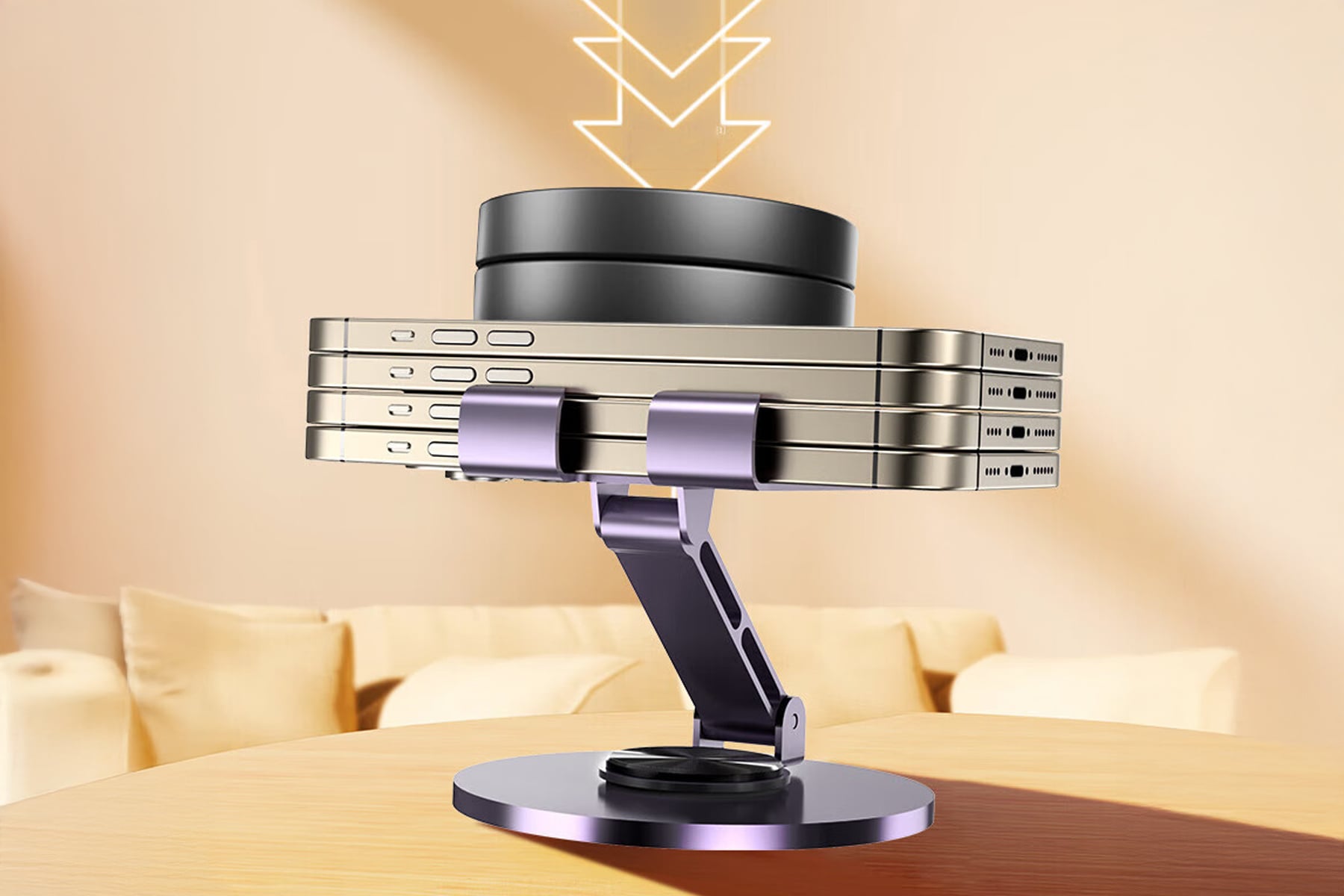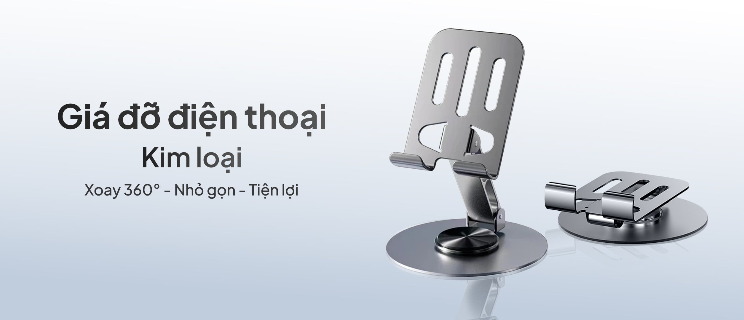 Giá đỡ điện thoại kim loại 360 làm từ hợp kim nhôm cao cấp, giữ thiết bị ổn định tuyệt đối. Thiết kế thông minh xoay 360 độ giúp điều chỉnh góc nhìn tối ưu, tương thích hoàn hảo cho cả điện thoại và máy tính bảng.