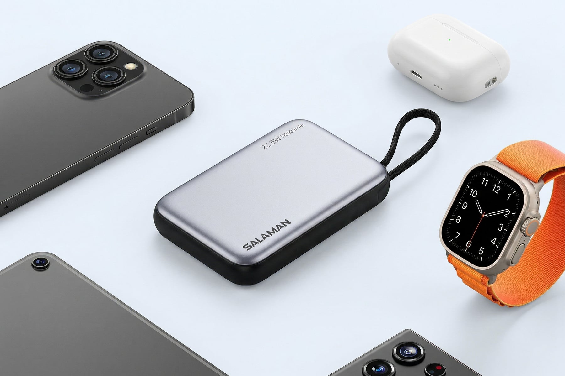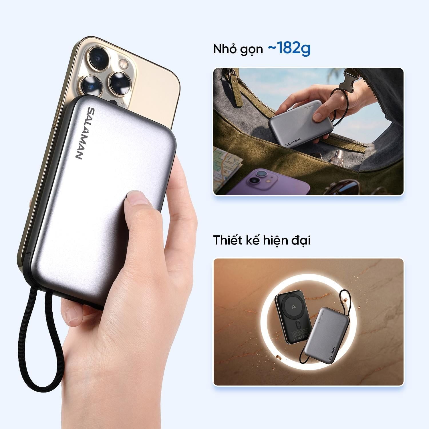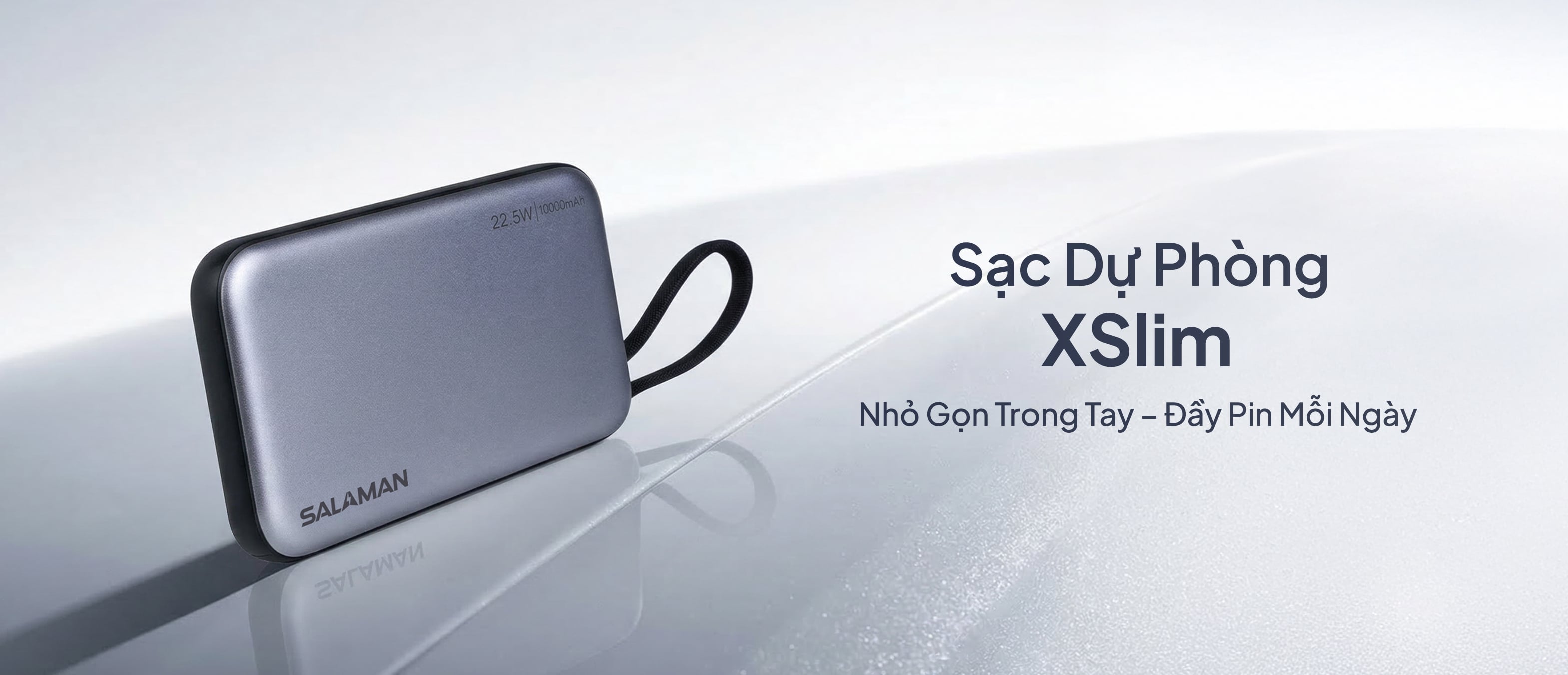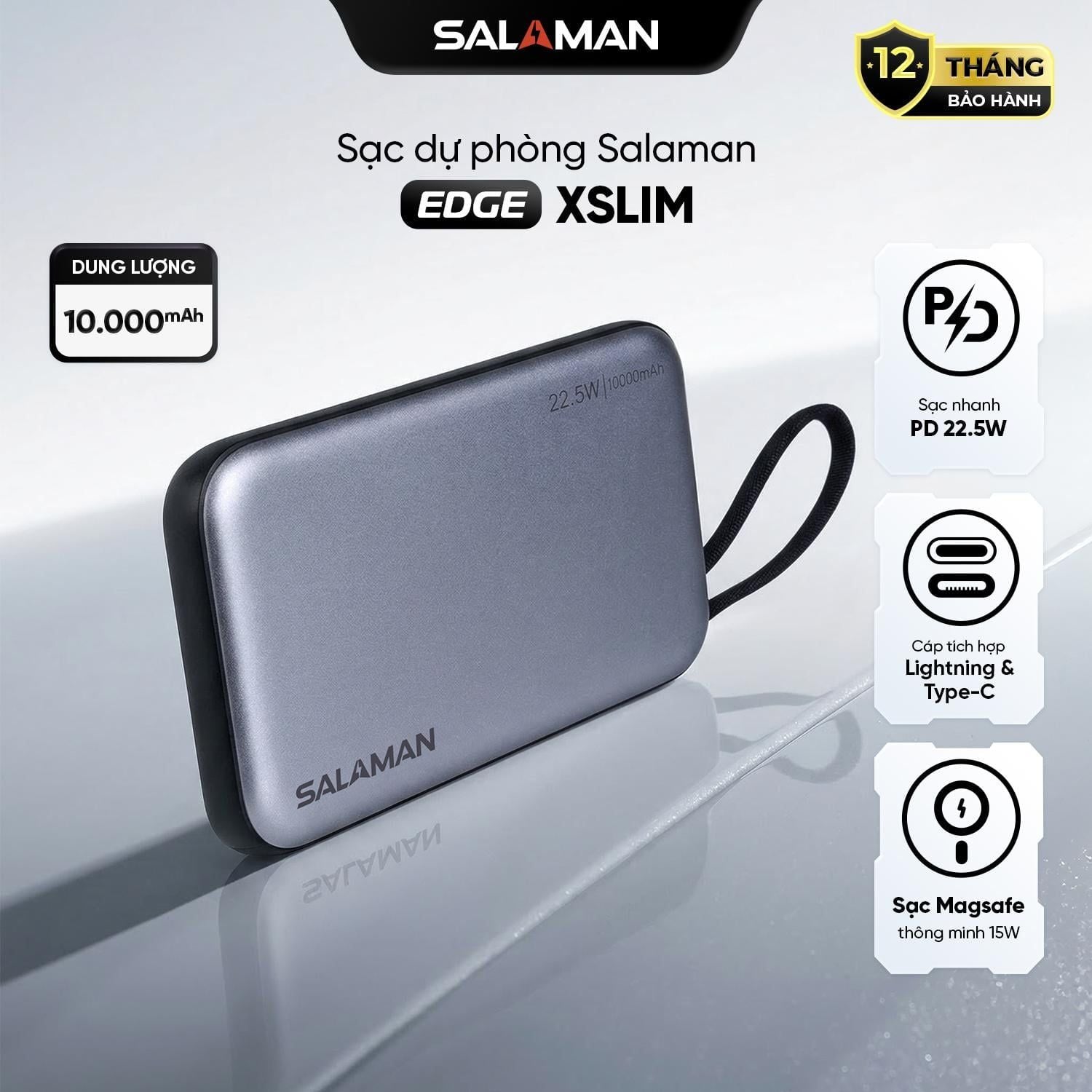 Salaman XSlim là dòng sạc dự phòng 10.000mAh cao cấp nổi bật với thiết kế siêu mỏng và lớp vỏ xám kim loại sang trọng. Sản phẩm hội tụ đầy đủ các công nghệ sạc tân tiến nhất hiện nay như sạc nhanh 22.5W, sạc không dây 15W và hệ thống cáp tích hợp tiện dụng. Với kích thước gọn nhẹ dễ dàng mang theo và dung lượng pin chuẩn hiệu suất, XSlim là giải pháp năng lượng hoàn hảo cho nhịp sống hiện đại, năng động.