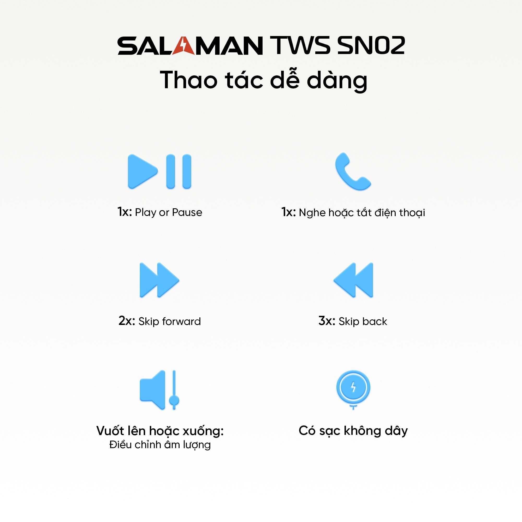 Dòng: Salaman Nano Mã sản phẩm: SLM-TWS-SN02 Tình trạng: Còn hàng