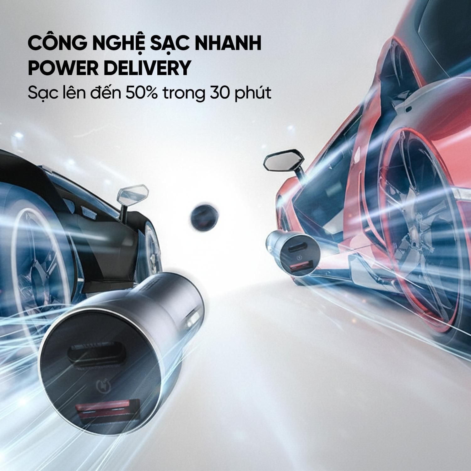 Sạc siêu tốc với cổng Type-C (35W) và USB (20W), hỗ trợ đa dạng thiết bị di động và điện tử khác.